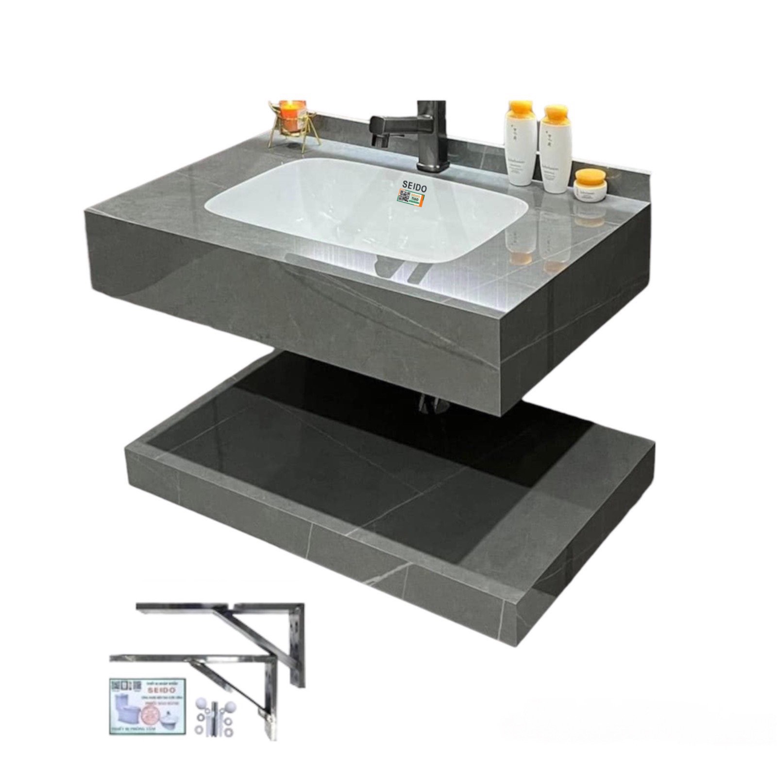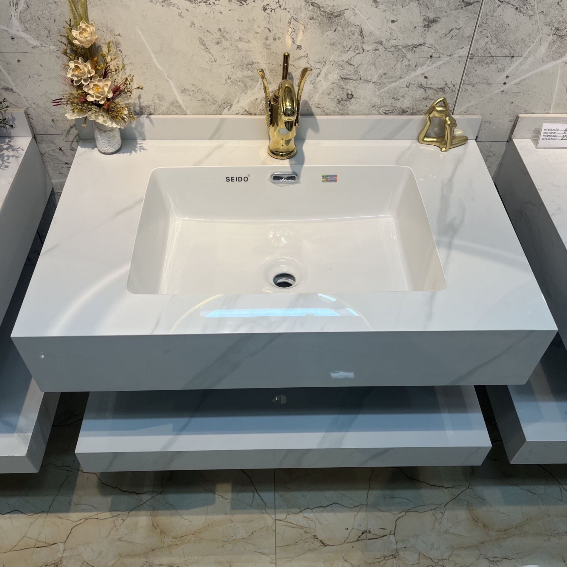 Là loại bàn đá đặc thù với vân đá chế tác dành riêng, đồng bộ với sen vòi trong nhà tắm. Sự hòa quyện đồng điệu màu sắc các sản phẩm tạo ra phong cách sang trọng đặc biệt.