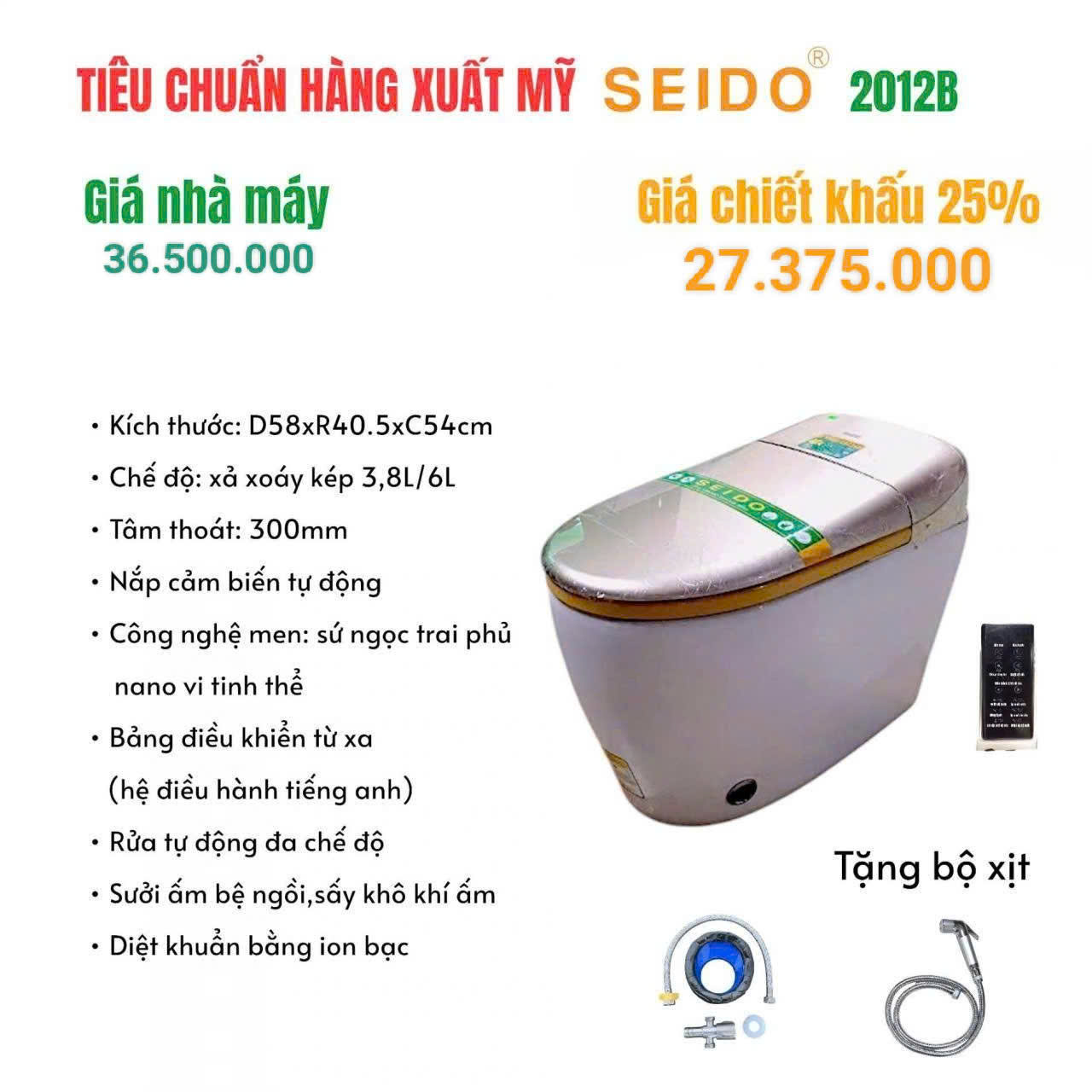6. Bệt cảm ứng thông minh 2012B (Bảo hành sứ 5 năm,phầnđiện tử 1 năm)