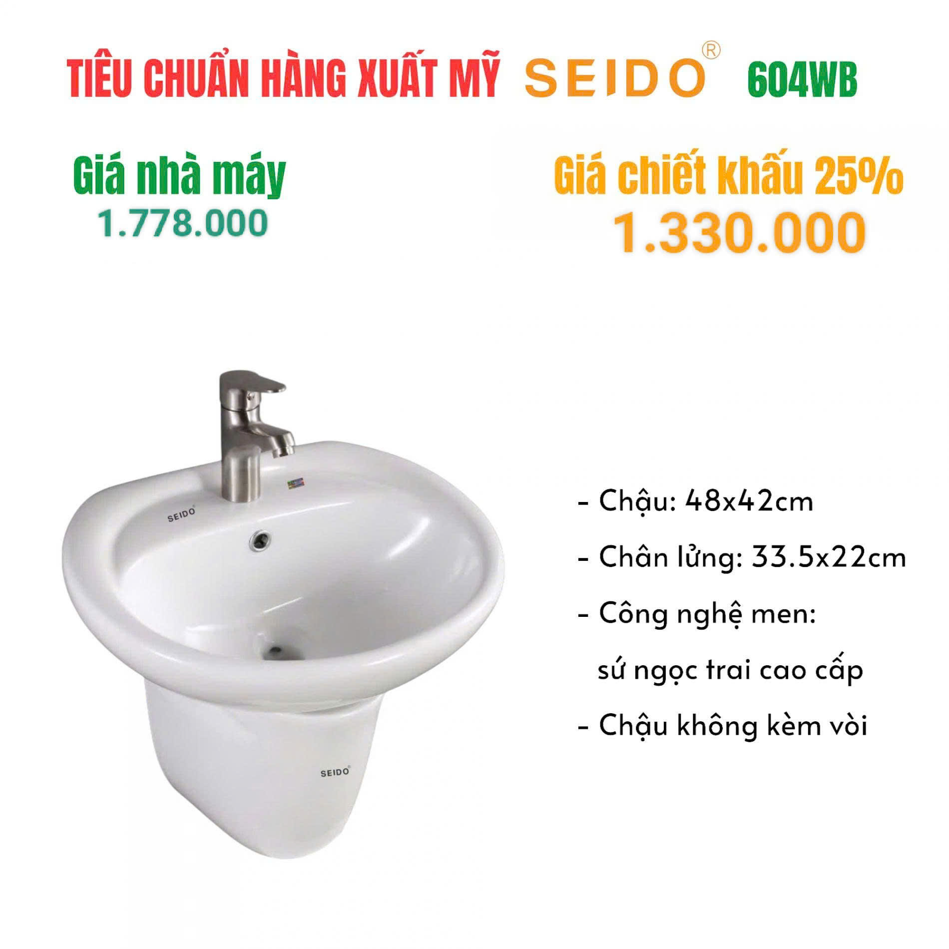 2. Chậu sứ chân lửng 604WB (bảo hành 5 năm) dễ dàng lắp đặt và tiết kiệm chi phí, kiểu dáng sang trọng phù hợp cho nhiều phòng vệ sinh, đặc biệt là phòng có không gian lớn mang phong cách hiện đại.