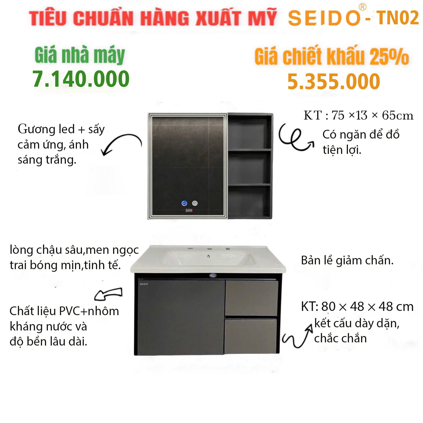 1. Bộ tủ chậu gương TNO2 ( Kích thước: Tủ:80x48x48cm, gương:75x13x65cm )